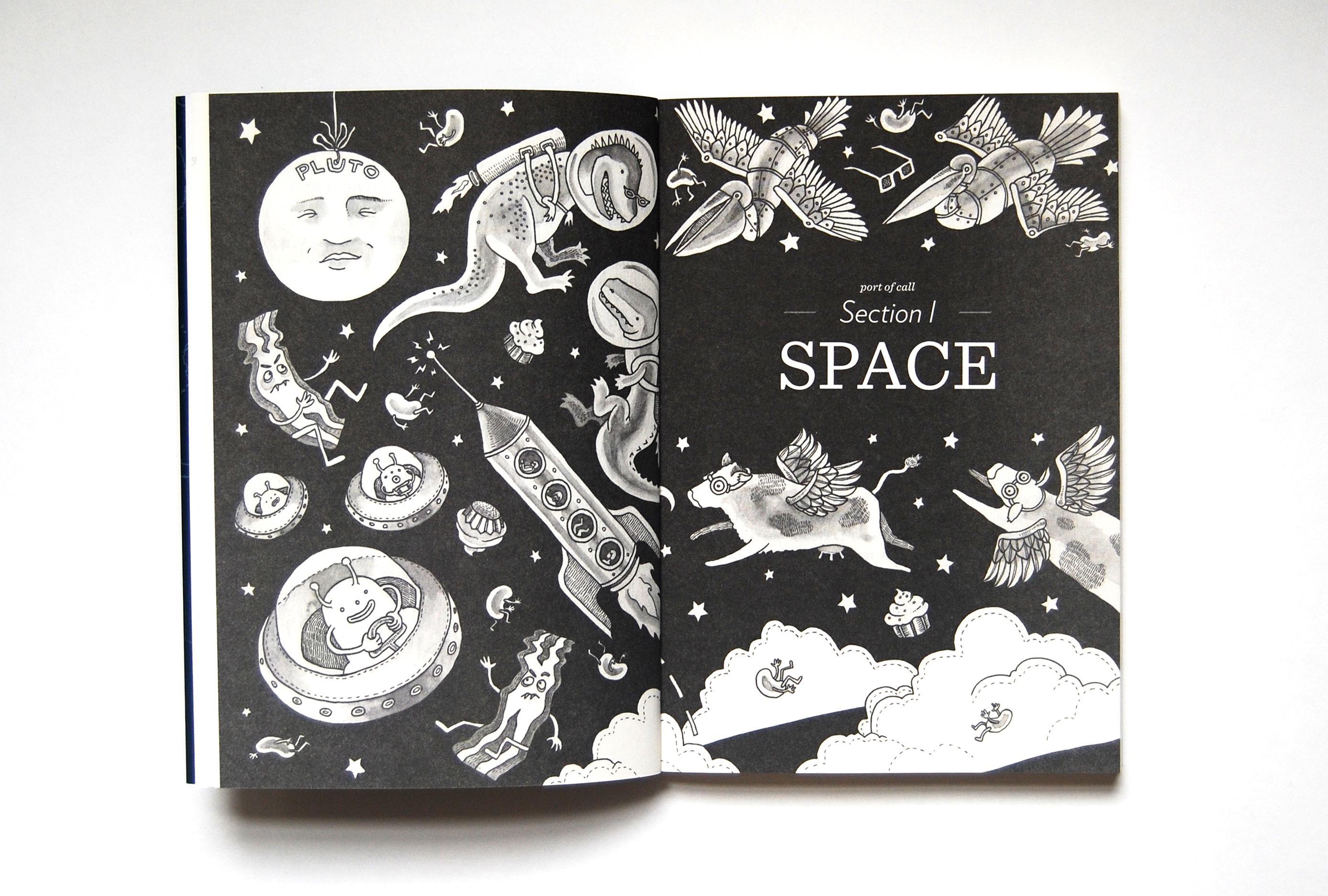 As 826CHI’s Publications Intern, Compendium IV was my project from start to finish. Over the course of a year, I managed a team of 826CHI volunteers and interns as well as a class of graduate students in DePaul’s Writing and Publishing MA program. We sifted through hundreds of stories and singled out the most promising pieces. With the help of all-stars Alison Kuczwara (designer) and Marnie Galloway (illustrator), I assembled, edited, and produced a unique and beautiful anthology.